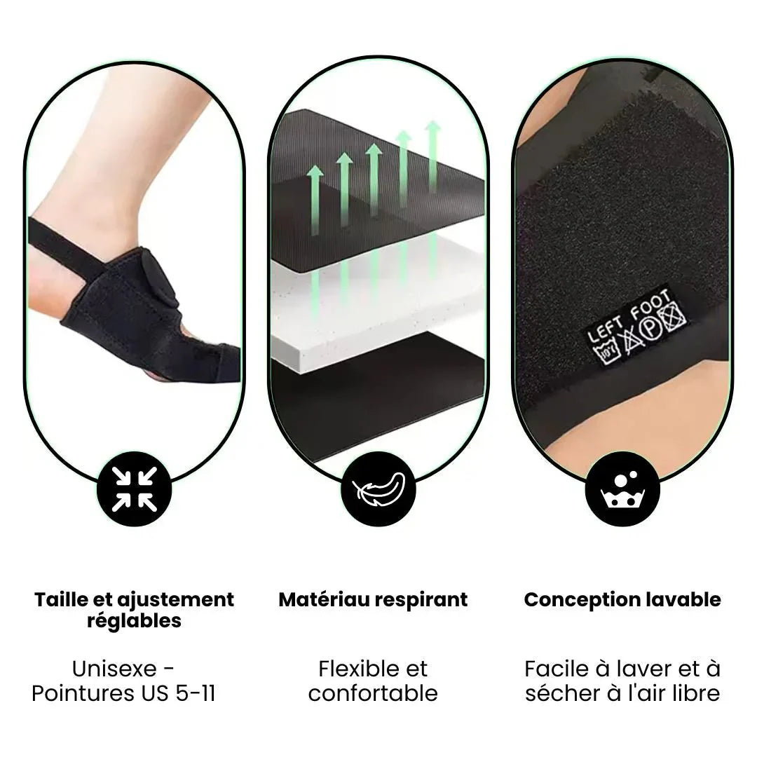 L'attelle vous assure un soulagement immédiat de la pression et des douleurs nocturnes, vous permettant de retrouver un sommeil réparateur sans inconfort. Avec sa conception ajustable, elle s'adapte parfaitement à votre pied, favorisant une posture correcte et ralentissant l'aggravation de votre hallux valgus.