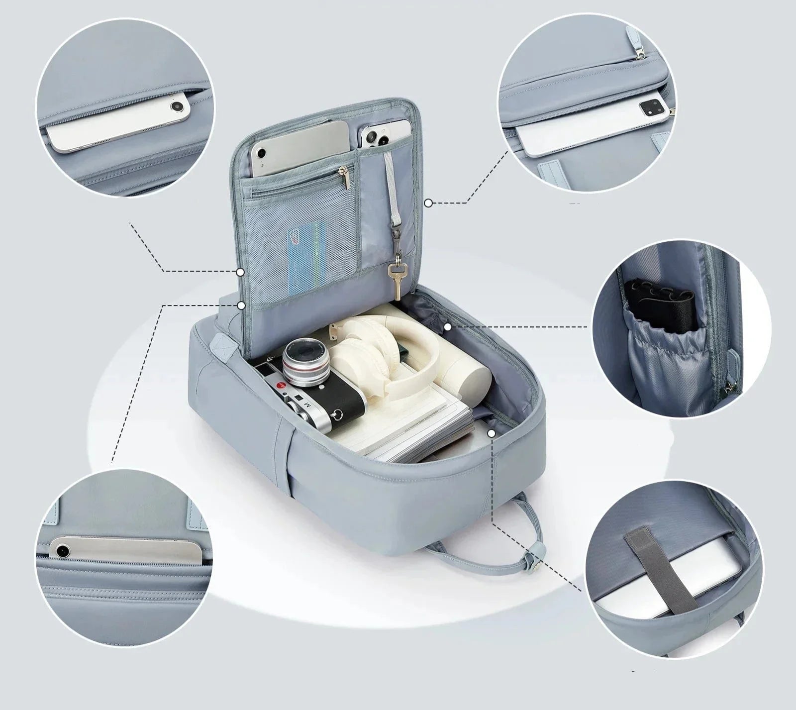 Ce sac à dos est disponible en plusieurs coloris élégants : Noir, Bleu, Bleu Nuit, Kaki, Vert, et Vert Clair.