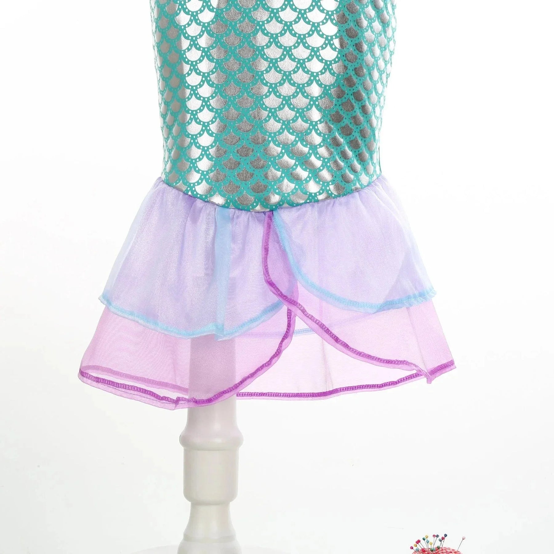 Robe sirène enfant féerique, inspirée Ariel, élégante avec détails brillants, idéale anniversaire et carnaval.