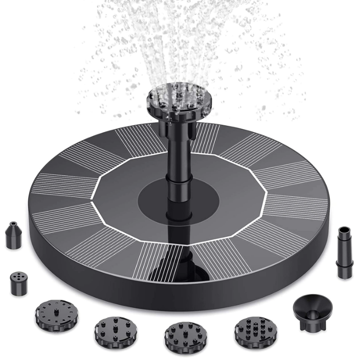 "Fontaine solaire élégante avec buses réglables, créant une ambiance zen dans votre jardin, image de produit"