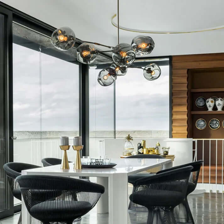 Illuminez votre intérieur avec ce magnifique lustre suspension au design moderne et élégant. Ses formes uniques en verre bulles créent une ambiance chaleureuse et sophistiquée.
