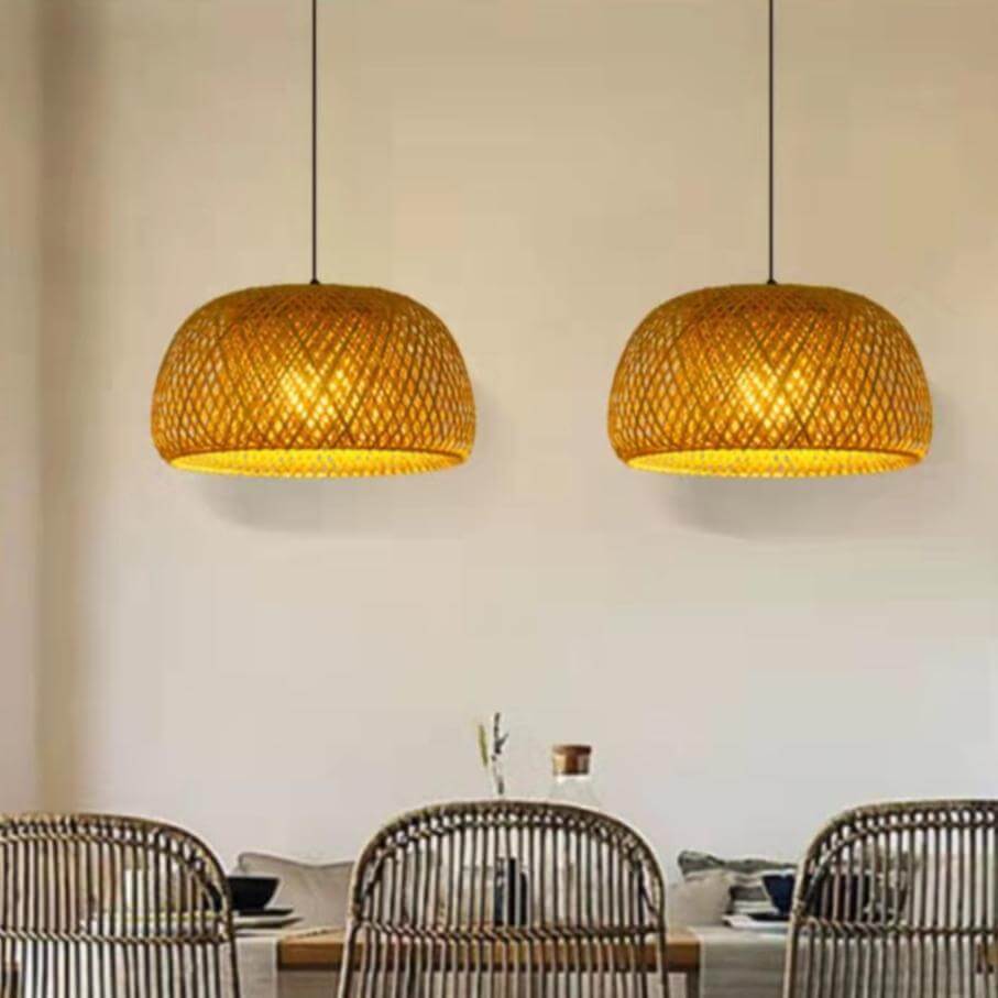 Suspension Lumineuse en Bambou Tressé