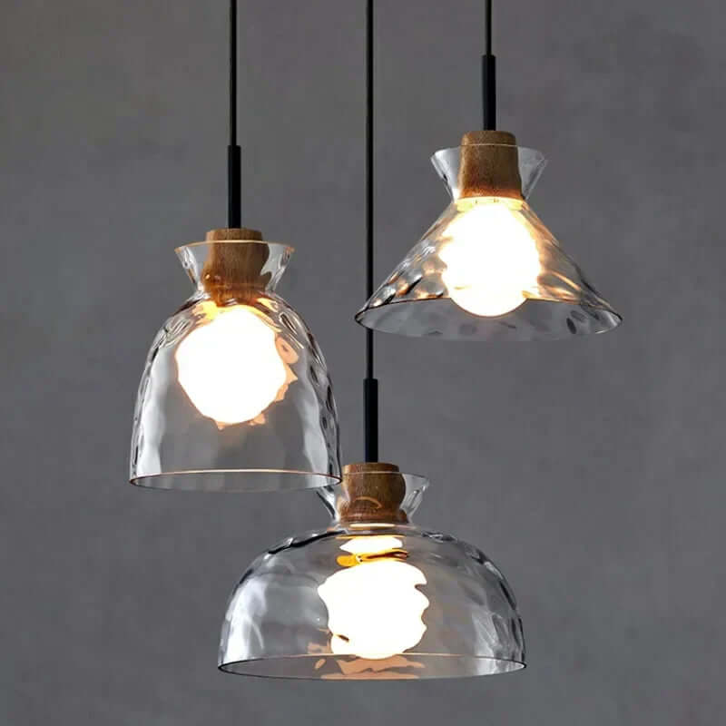 Suspension Lumineuse Verre et Bois - Élégance Moderne