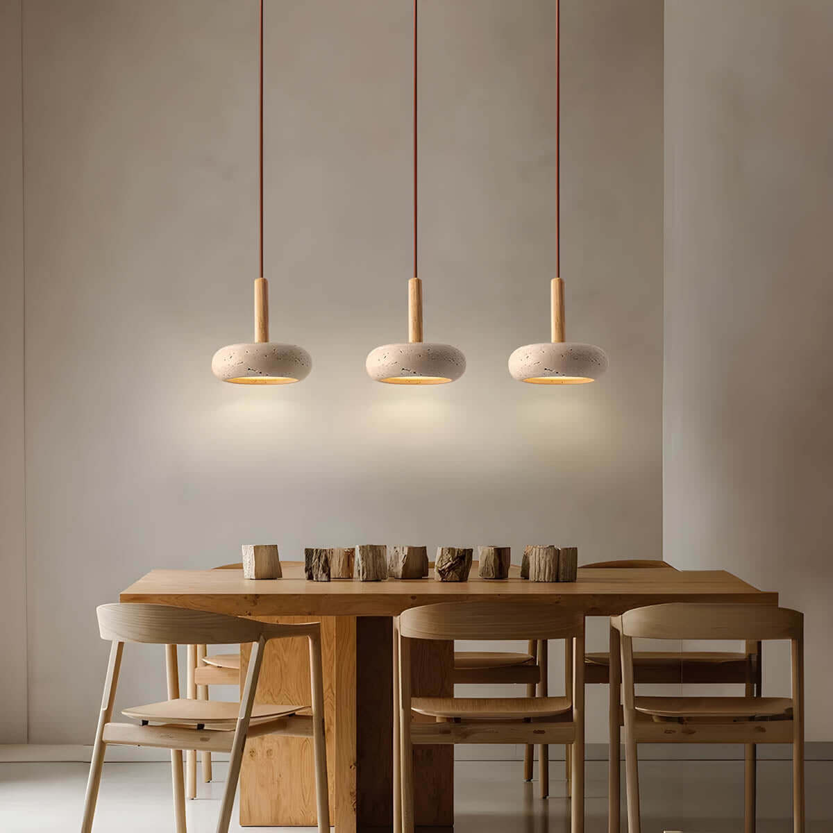 Ce luminaire pendentif se distingue par son design minimaliste et son utilisation de matériaux naturels. La pierre naturelle lui confère une texture unique et chaleureuse, créant une ambiance apaisante et sophistiquée.