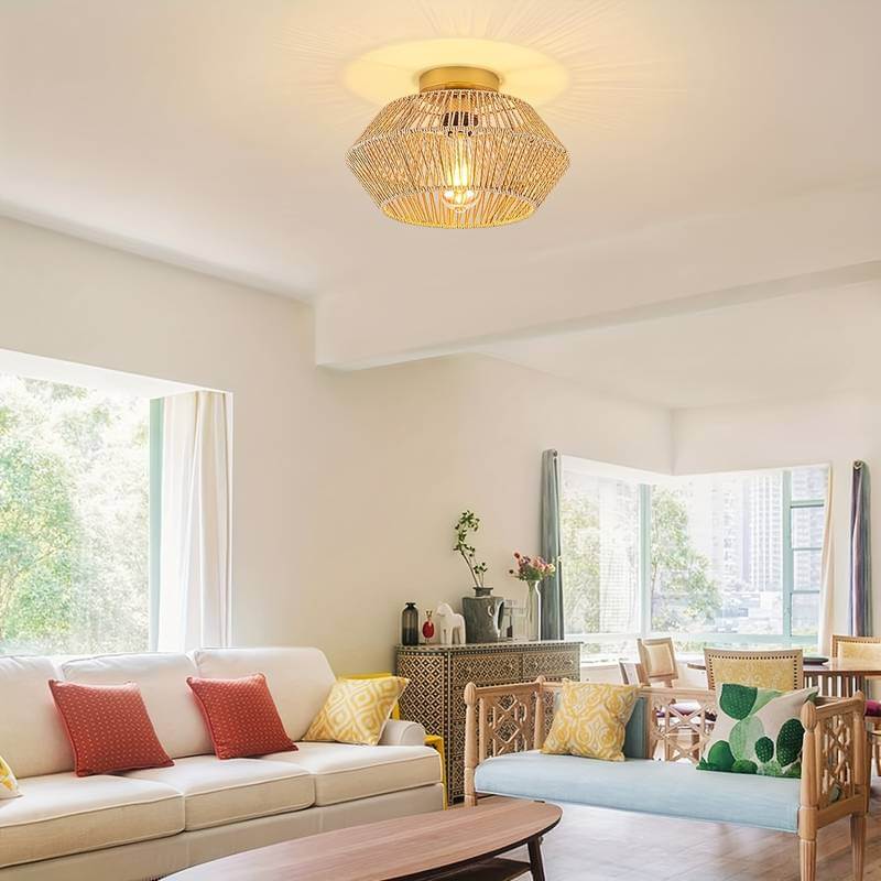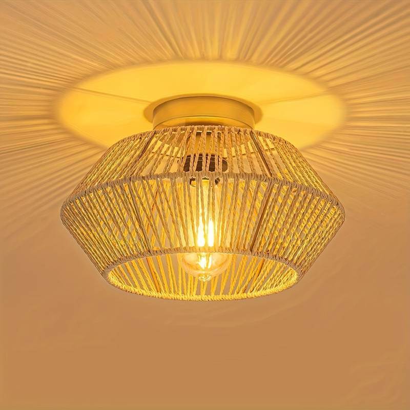 Créez une ambiance chaleureuse et accueillante grâce à ce magnifique plafonnier en rotin. Son design unique apportera une touche bohème et élégante à votre pièce.