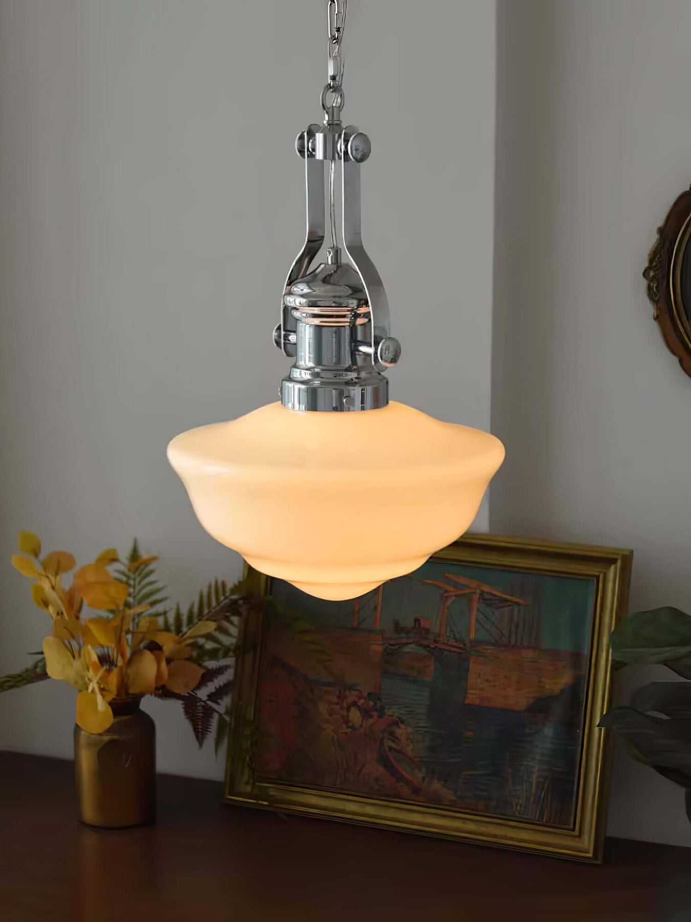 Un design intemporel : Son abat-jour en verre et sa structure métallique rappellent l'esthétique des lampes d'écoles d'antan, revisitée avec modernité. Créez une ambiance chaleureuse et accueillante dans votre maison grâce à cette pièce unique.