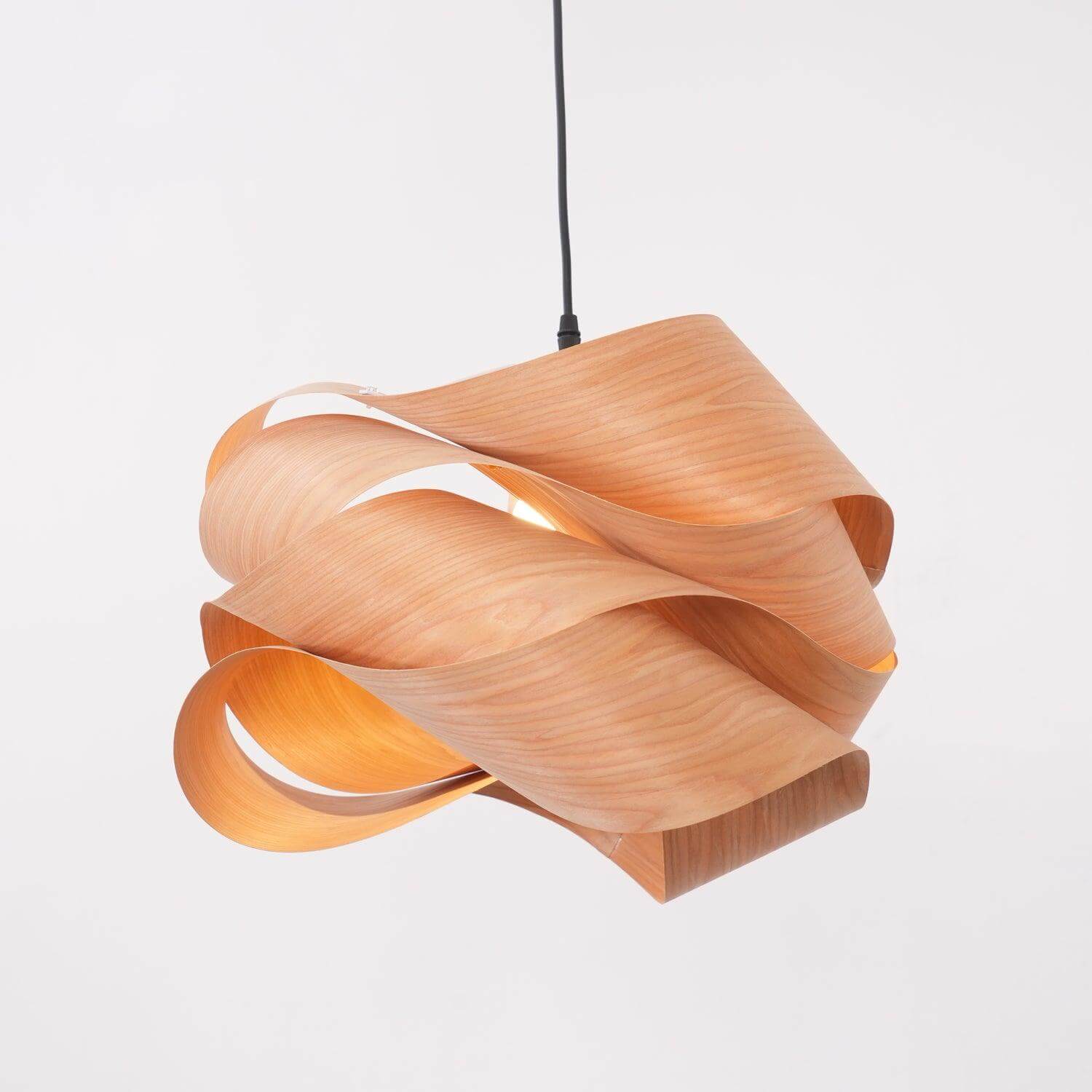 Cette suspension se distingue par son abat-jour en bois naturel, finement travaillé, qui diffuse une lumière douce et tamisée. Le métal, utilisé pour la structure, ajoute une touche de modernité et assure une grande robustesse.