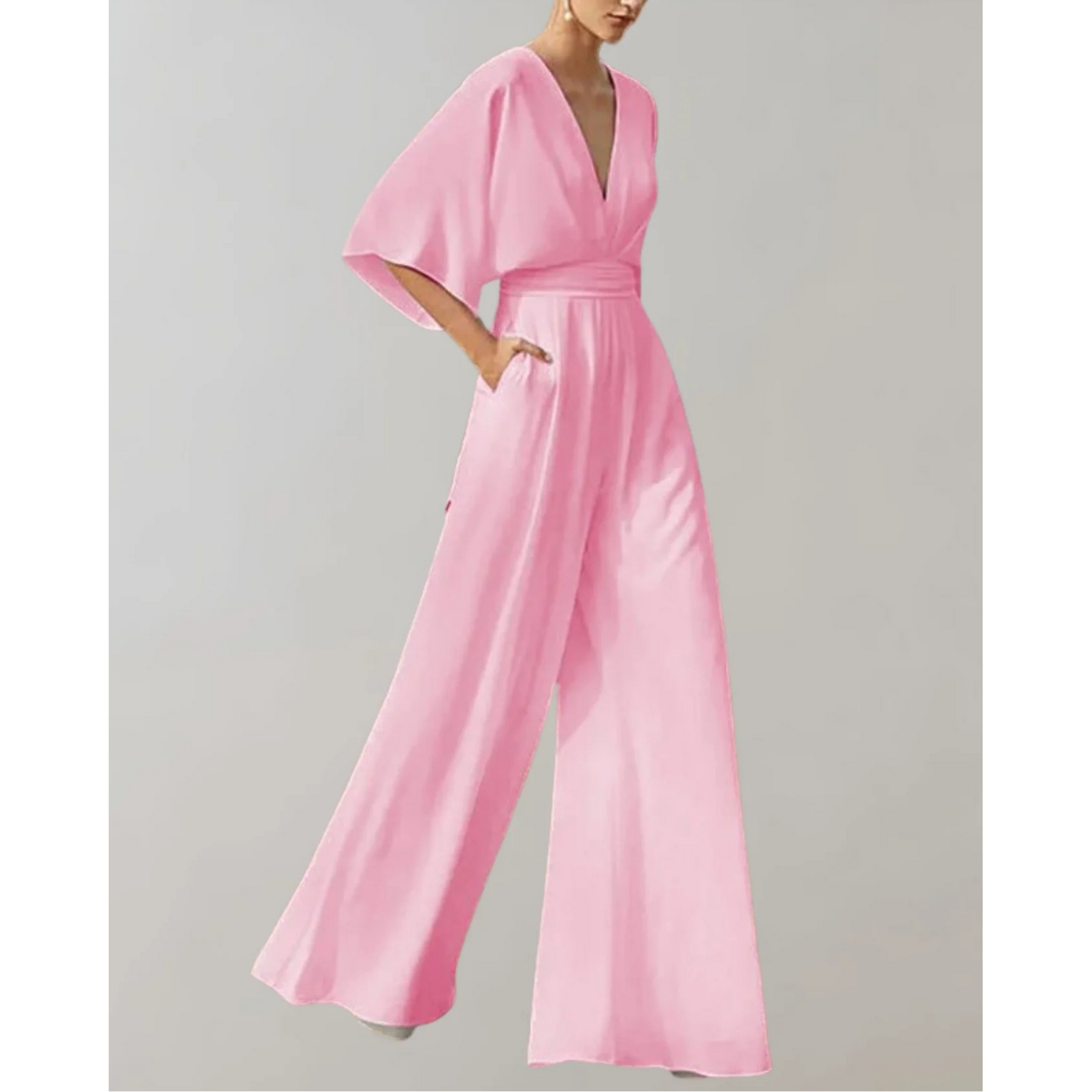 "Combinaison habillée femme, manches semi-transparentes, coupe fluide, décolleté en V, élégante et féminine"
