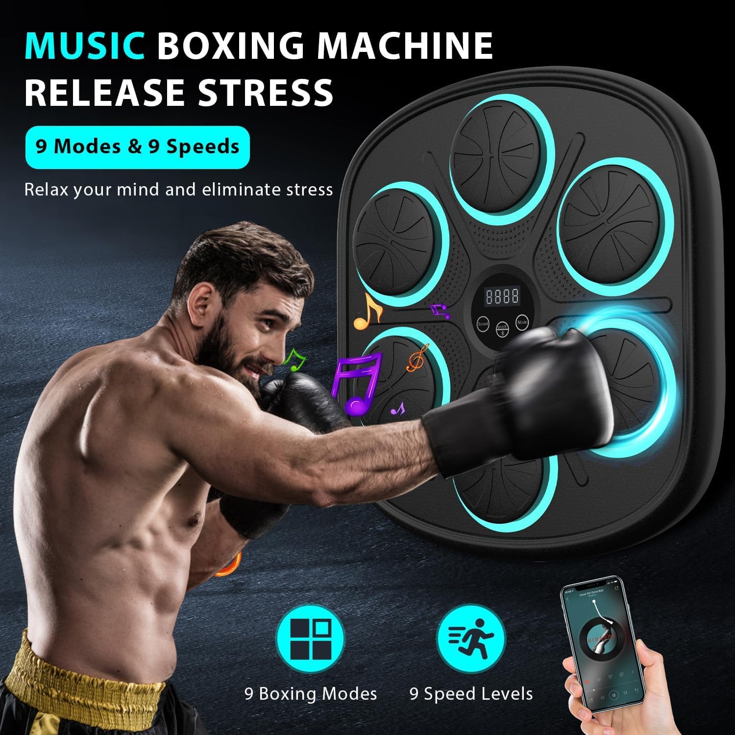 🎵 Entraînements Immersifs Propulsés par la Musique: Ressentez l’excitation d’un entraînement dynamique avec notre machine à boxe musicale de pointe. Avec ses neuf modes dynamiques et sa vitesse de saut de lumière réglable, vous pouvez personnaliser votre entraînement pour correspondre à vos morceaux préférés, assurant que chaque coup est parfaitement synchronisé avec le rythme.