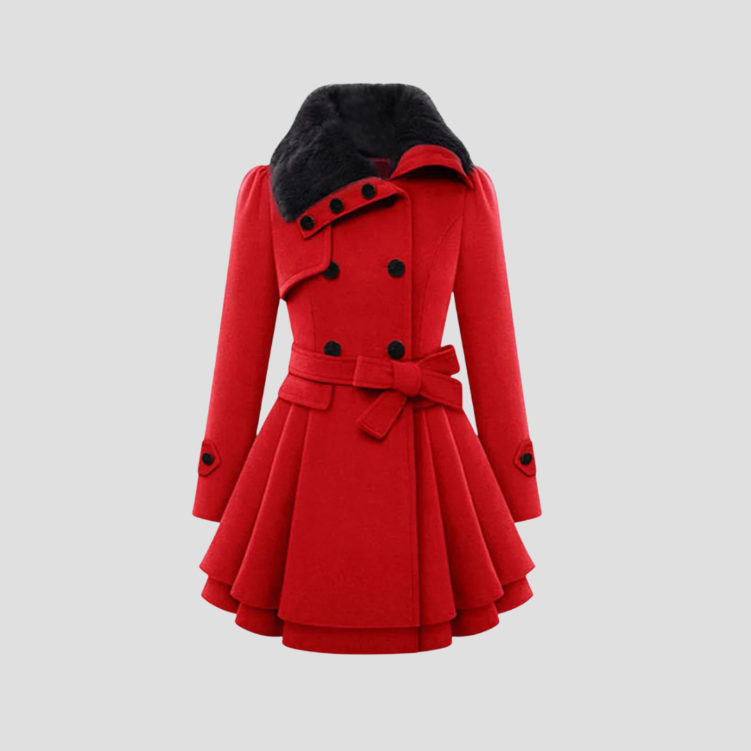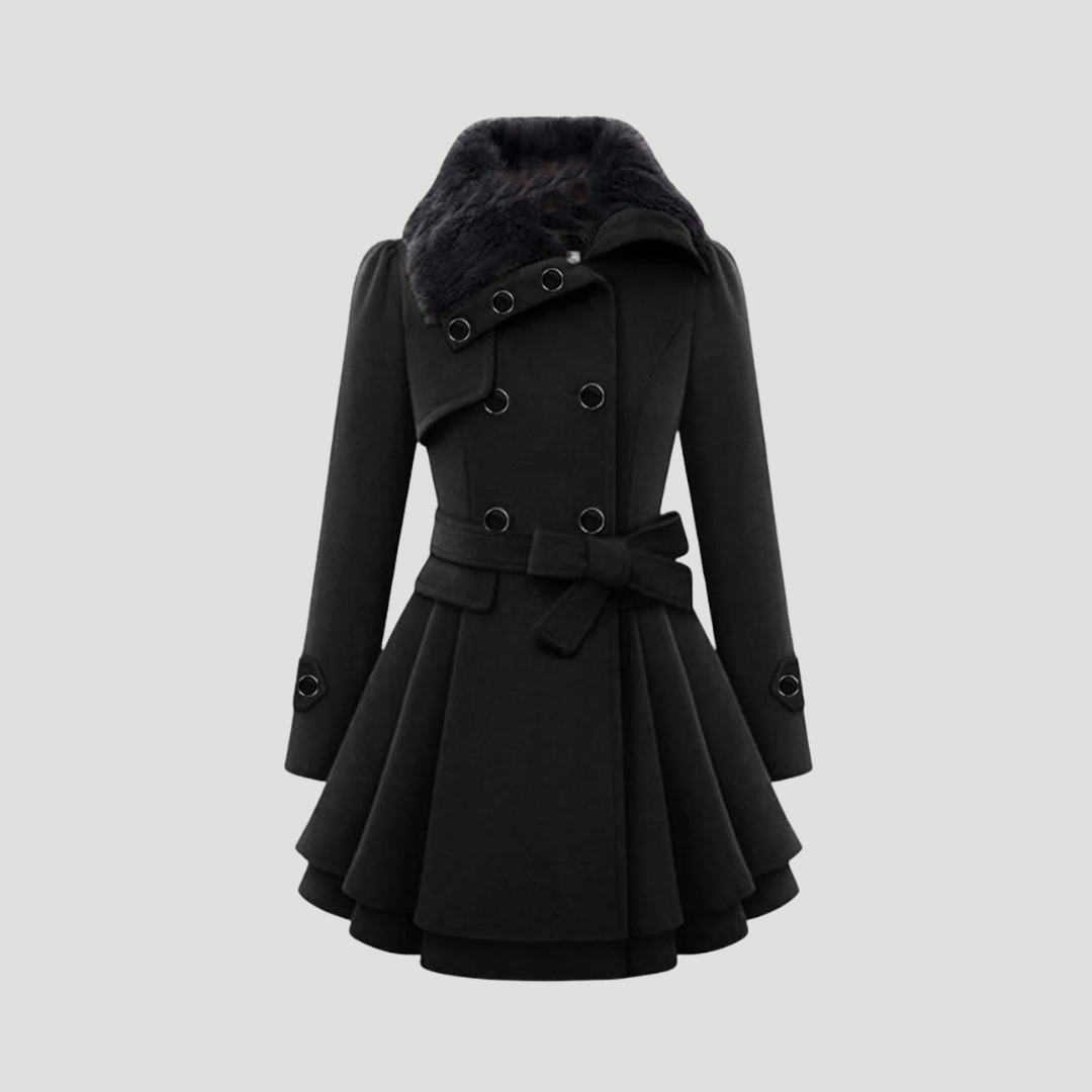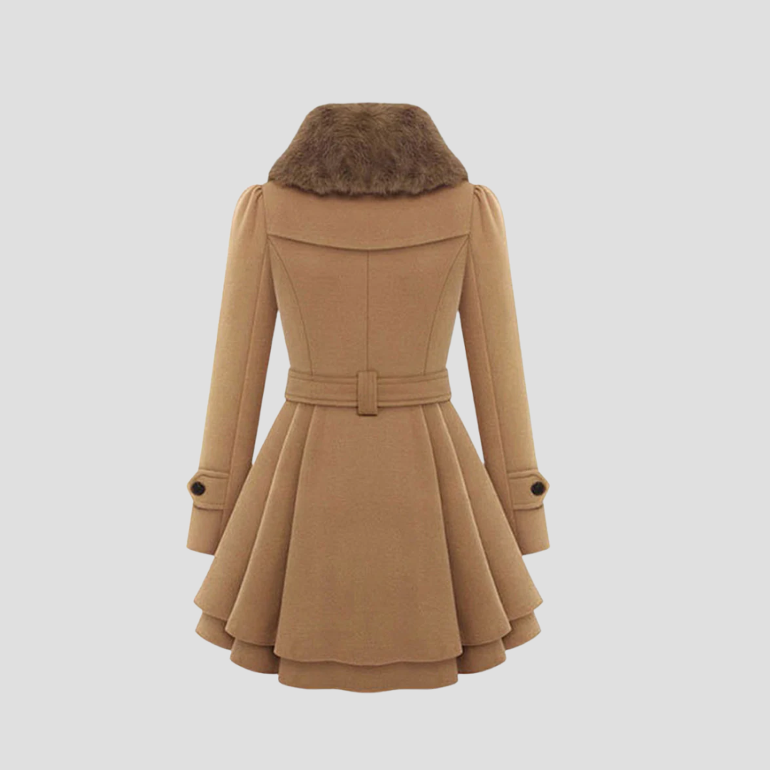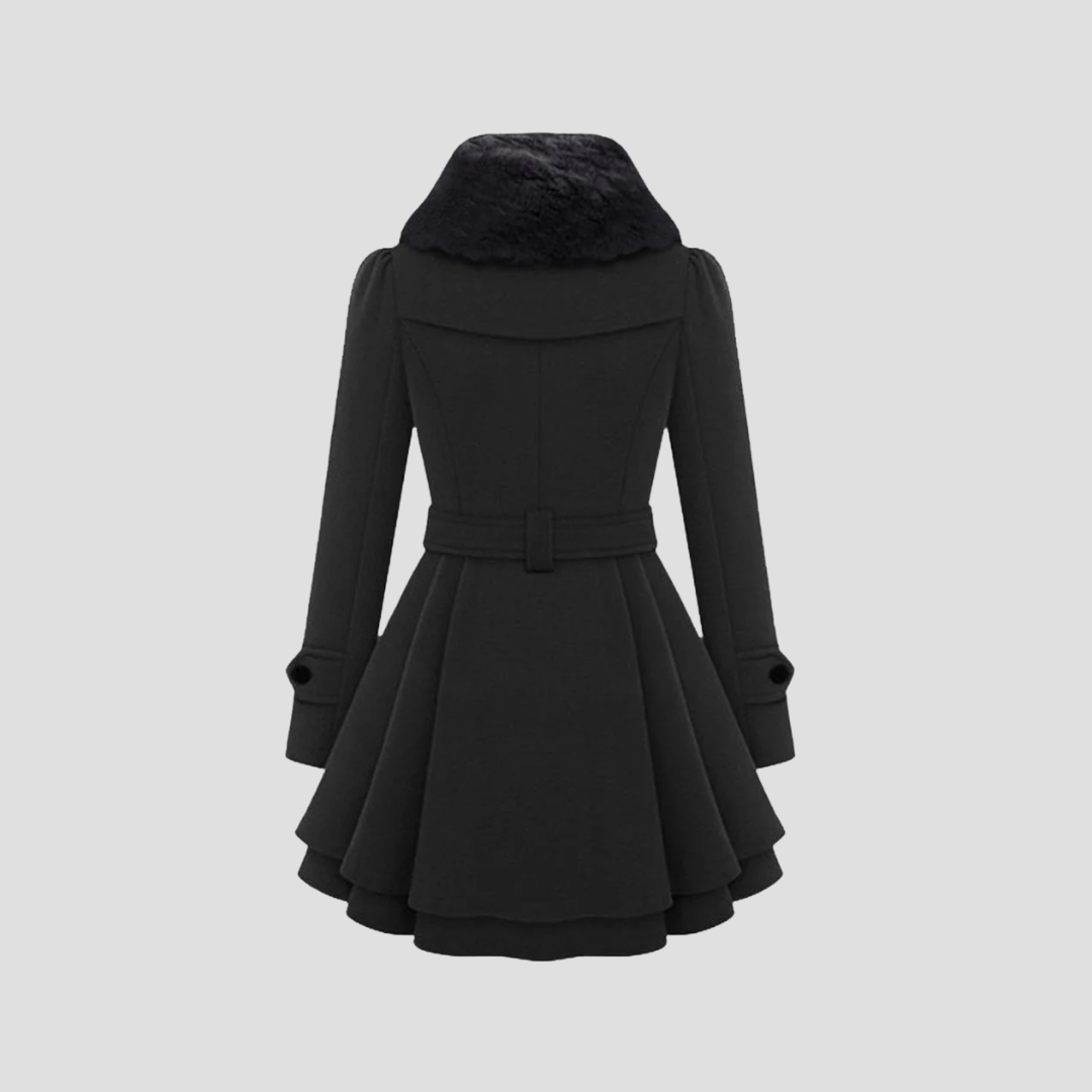 Manteau d'hiver féminin avec silhouette cintrée et touches luxueuses